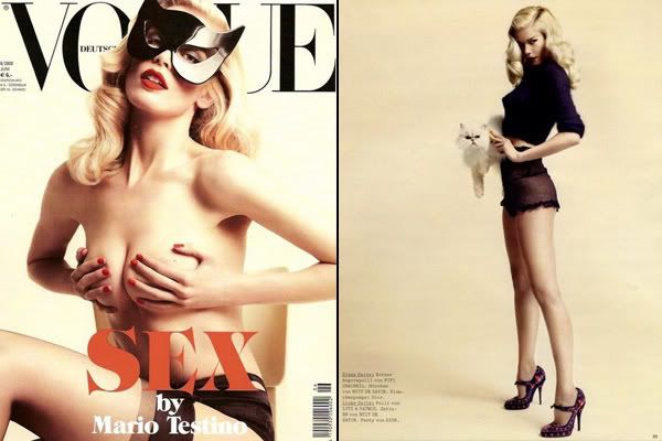Posing in little but a catwoman mask for the cover of Vogue Germany's latest issue, June 2008, the 37-year-old Schiffer looks the classic sex-kitten. Lensed by Mario Testino, you can find the full set of photos from the shoot in the Fashion Diary.